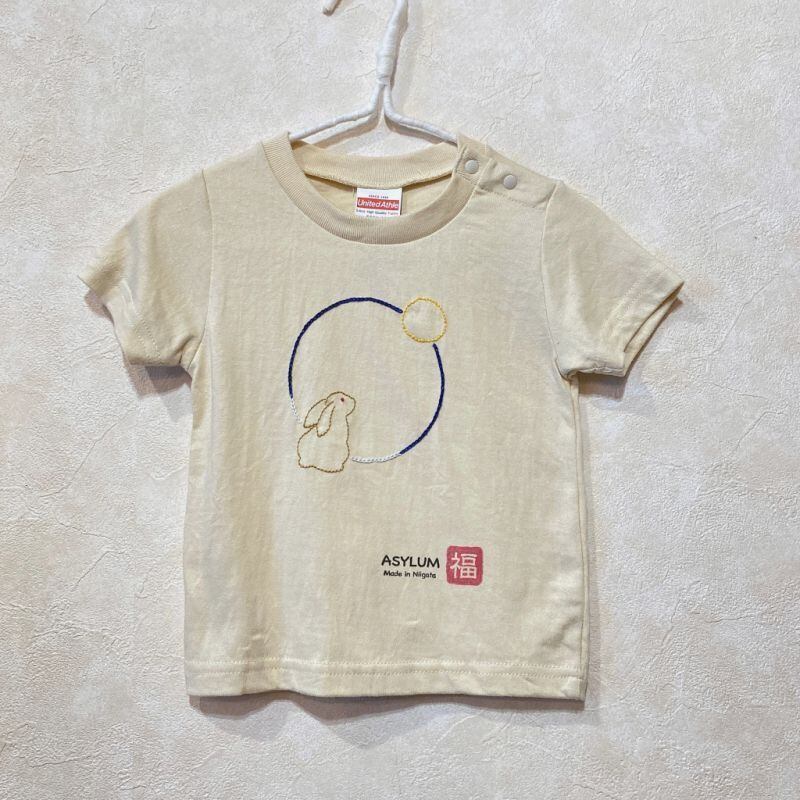 フロントに兎と月を、背守りモチーフにもうさぎを入れました。