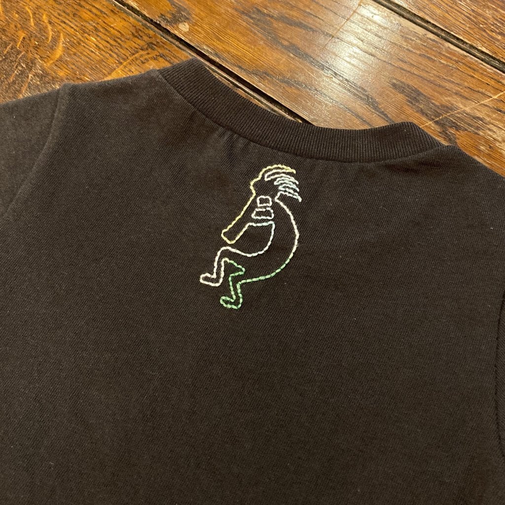 「Tipi(ティピ), Kokopelli(ココペリ)」を刺繍した背守りTeeです。
