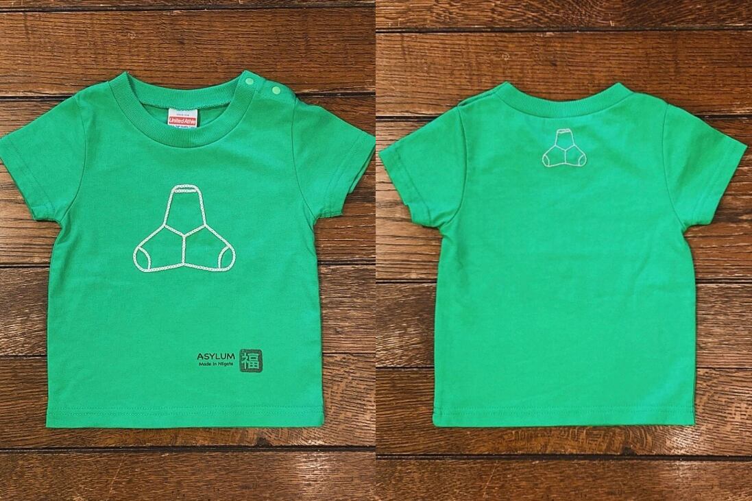 前後にテトラを刺繍した 背守りTシャツ『TETORA de BLOCK』です。