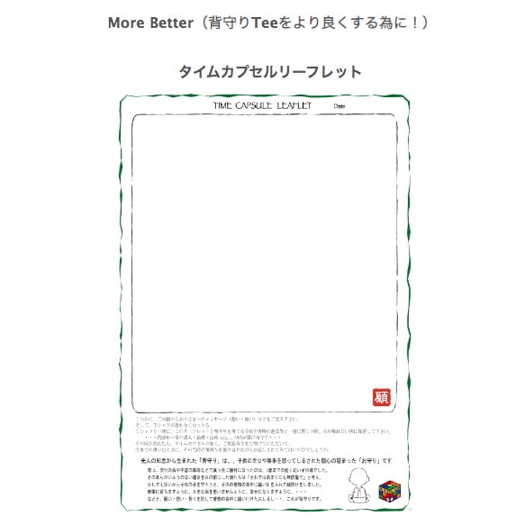 背守りをご購入された方に差し上げてるオリジナルの特製リーフレットです。