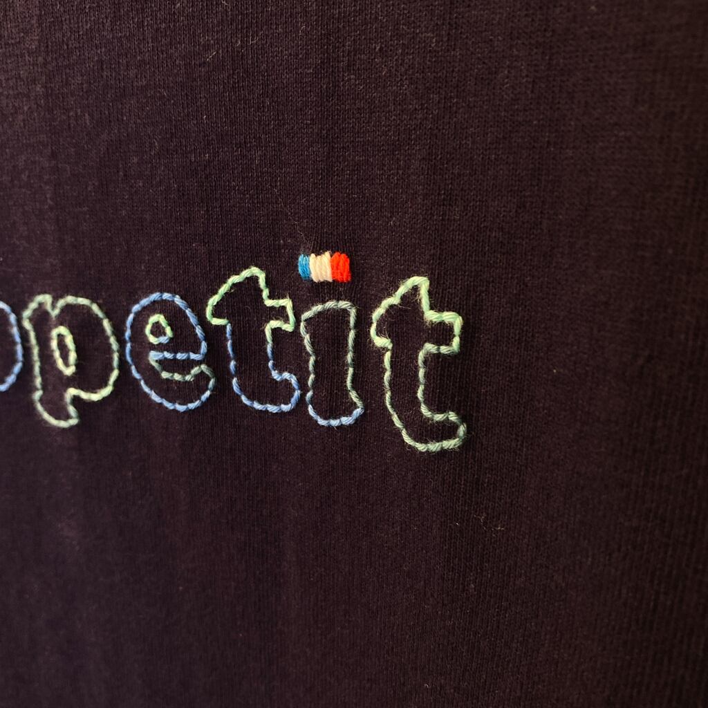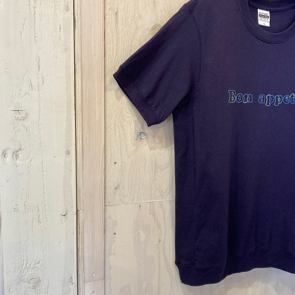 1枚1枚作っている特殊なデザインTシャツ、糸で「Bon appetit」と描くボナぺTeeです。