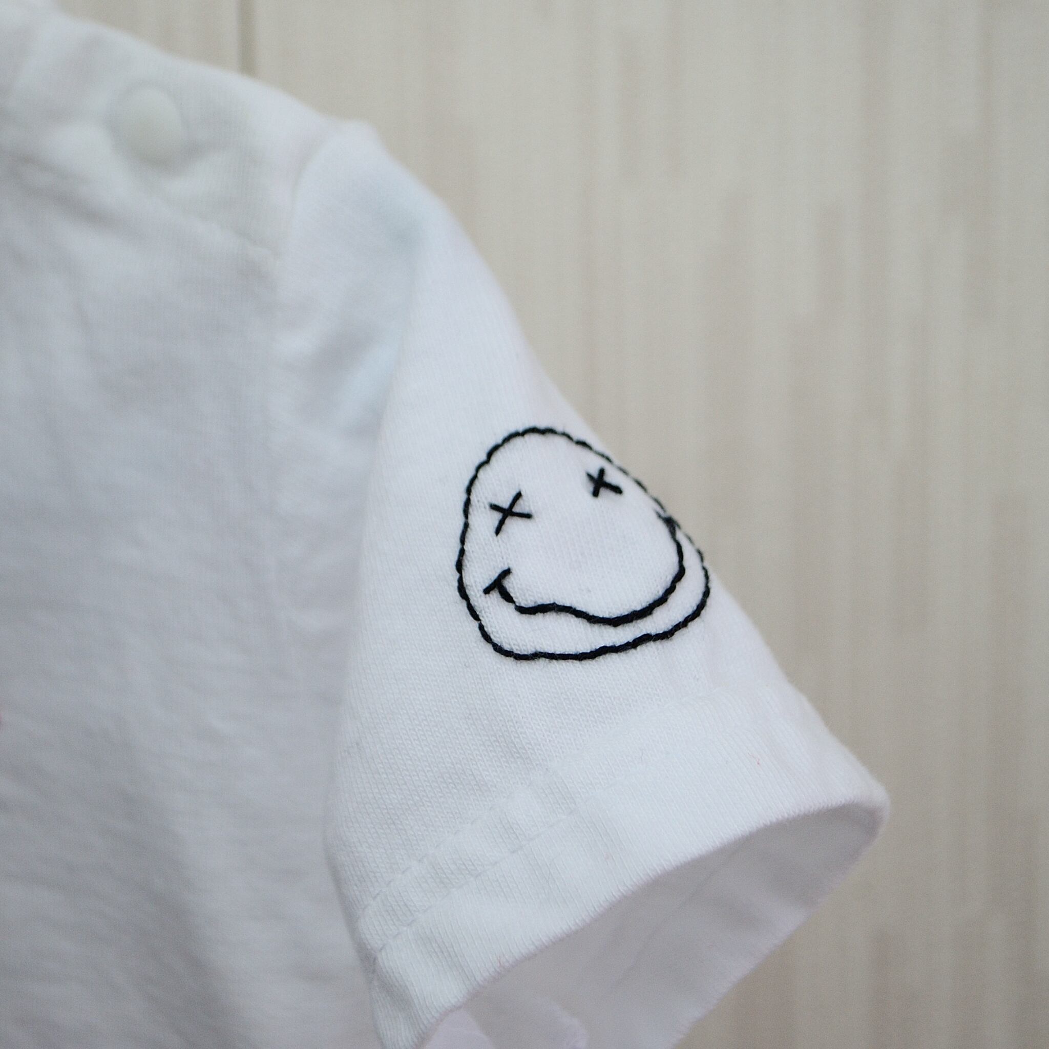 左袖にゆるゆるのスマイルマークを入れました。