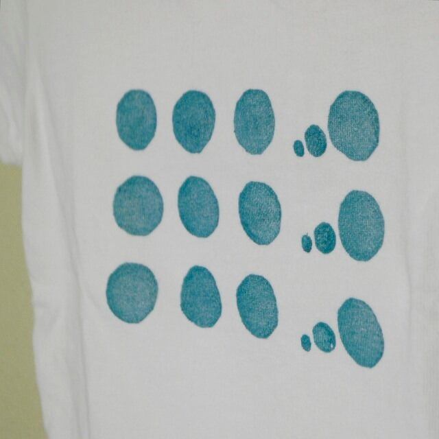 こってりとインクがのった量産品のプリントTシャツと違って、ユルイカタチの不揃いドットがハンドメイドの小さな主張です。