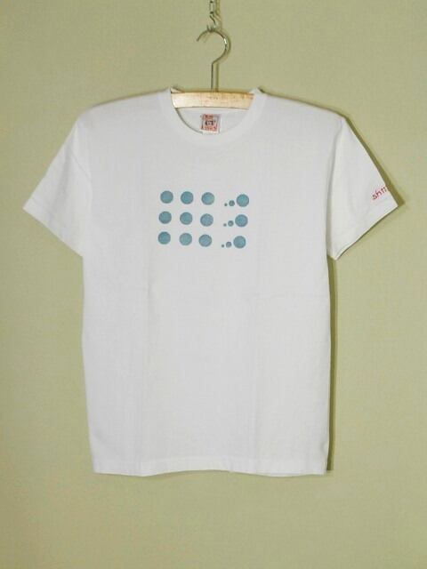 こってりとインクがのった量産品のプリントTシャツと違って、ユルイカタチの不揃いドットがハンドメイドの小さな主張です。