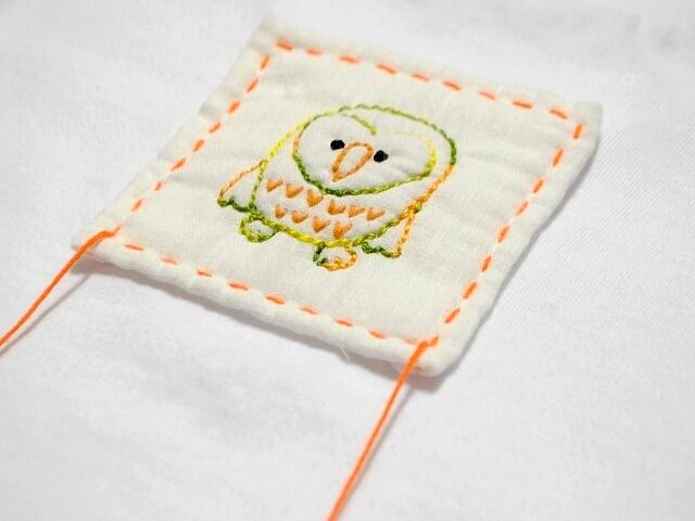 できるだけ肌に接する部分に縫い目が出ないように、モチーフをモチーフパッドに刺繍してから